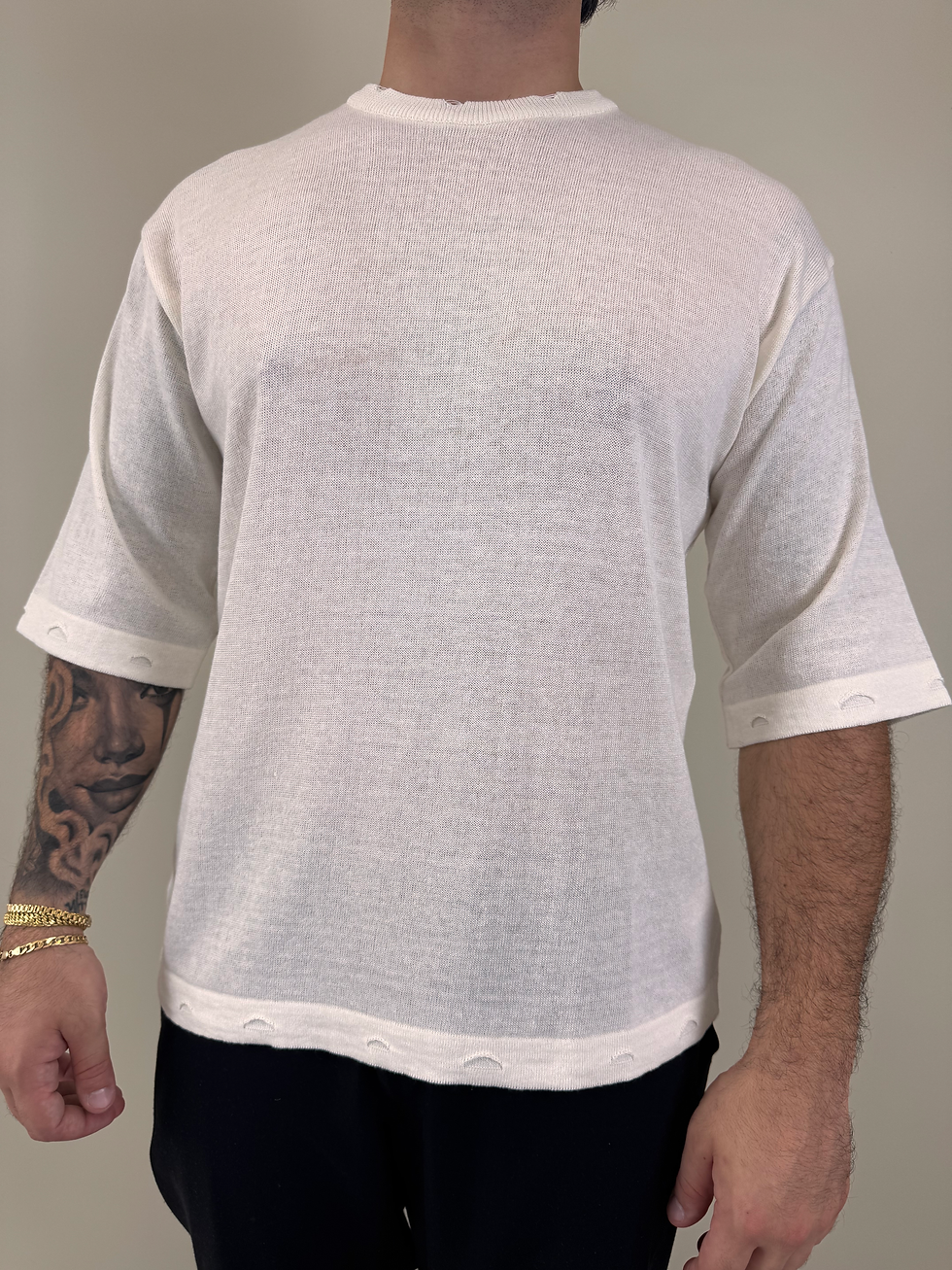 T-SHIRT IN FILO BIANCA CON ROTTURE