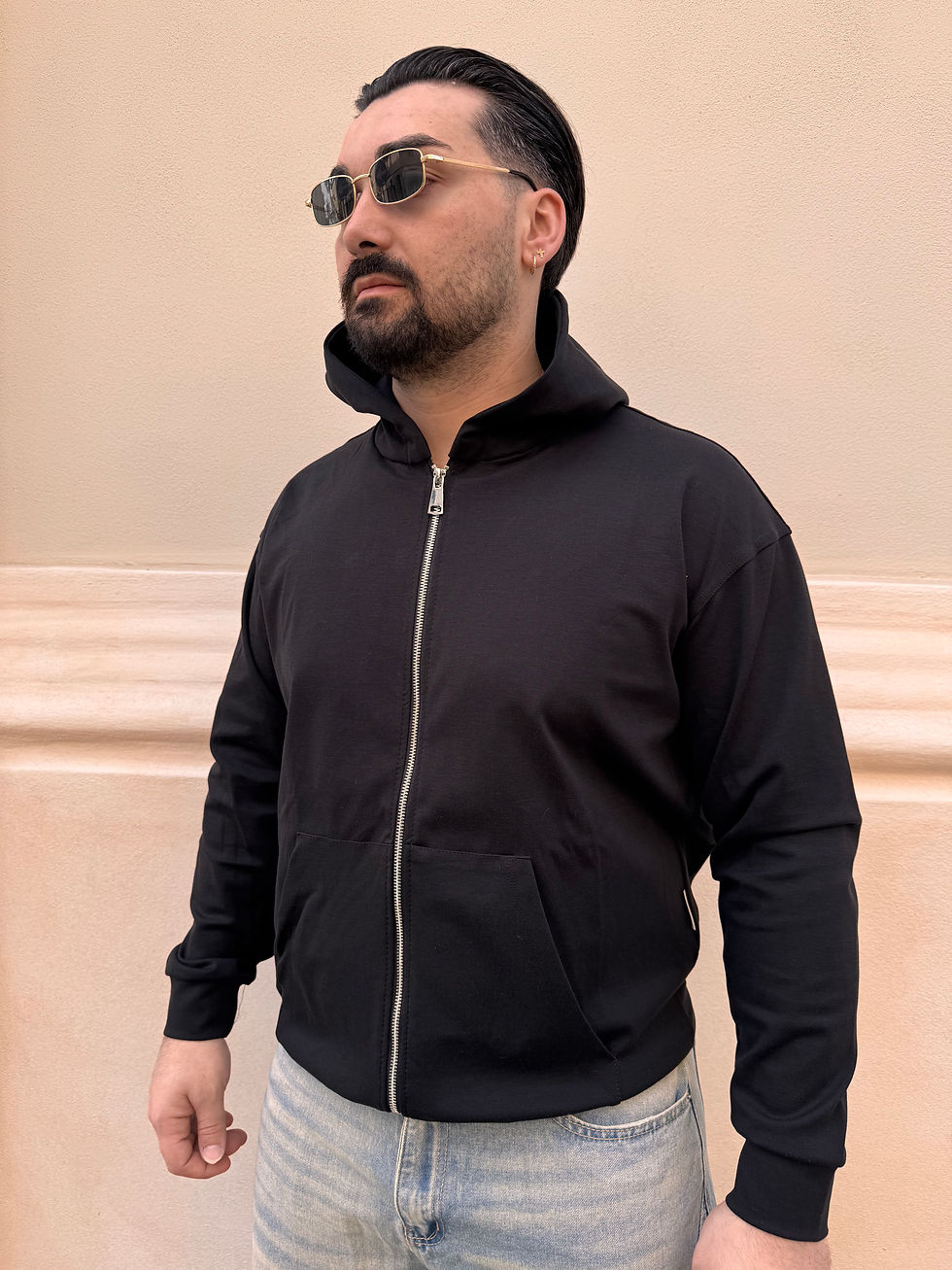 FELPA GARZATA NERA CON ZIP